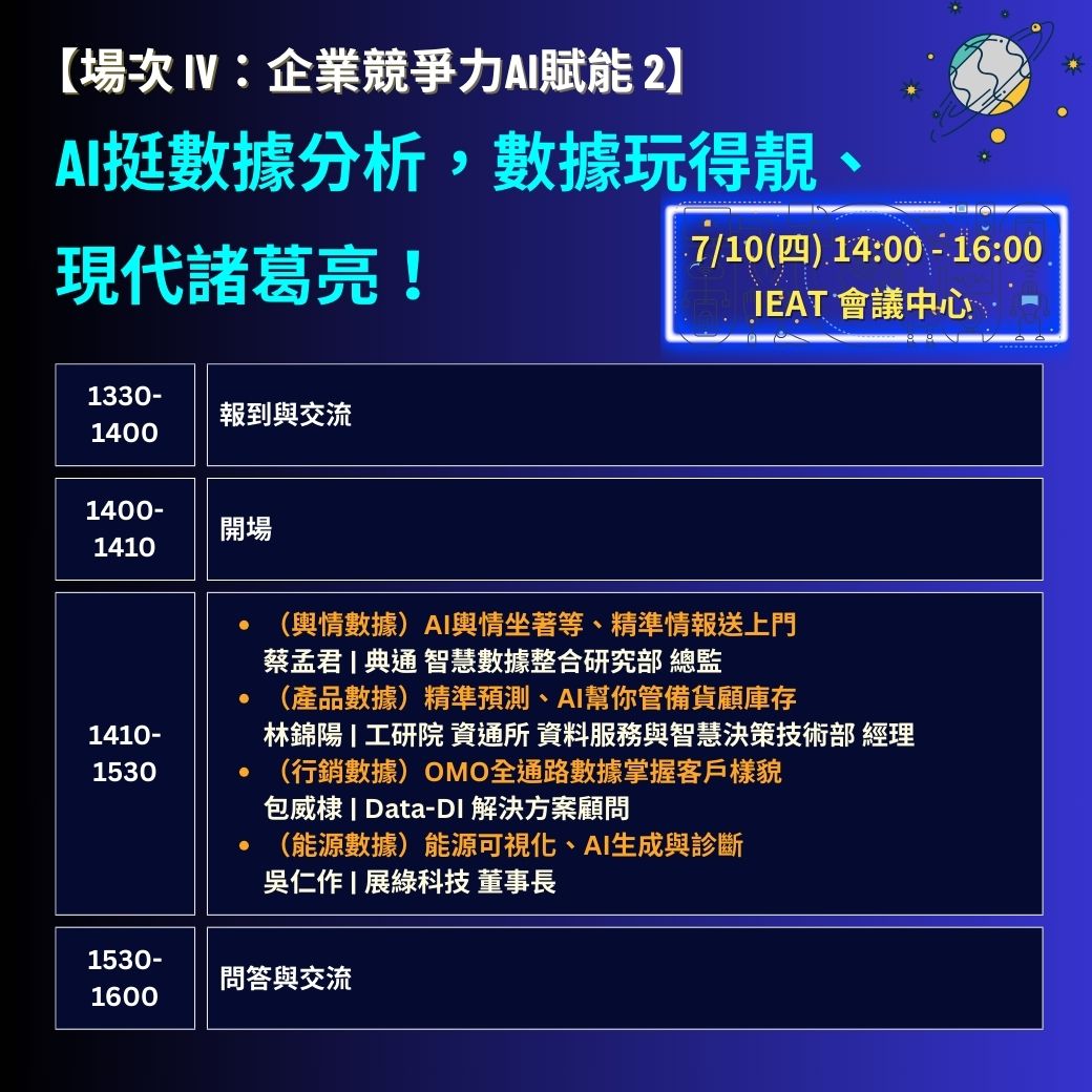 7/10【企業競爭力AI賦能 II】AI挺數據分析,數據玩得靚、現代諸葛亮!