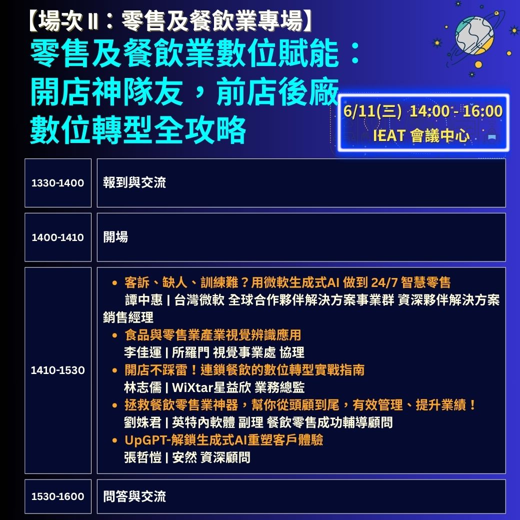 6/11【零售及餐飲業專場】零售及餐飲業數位賦能:零售及餐飲開店神隊友,前店後廠數位轉型全攻略