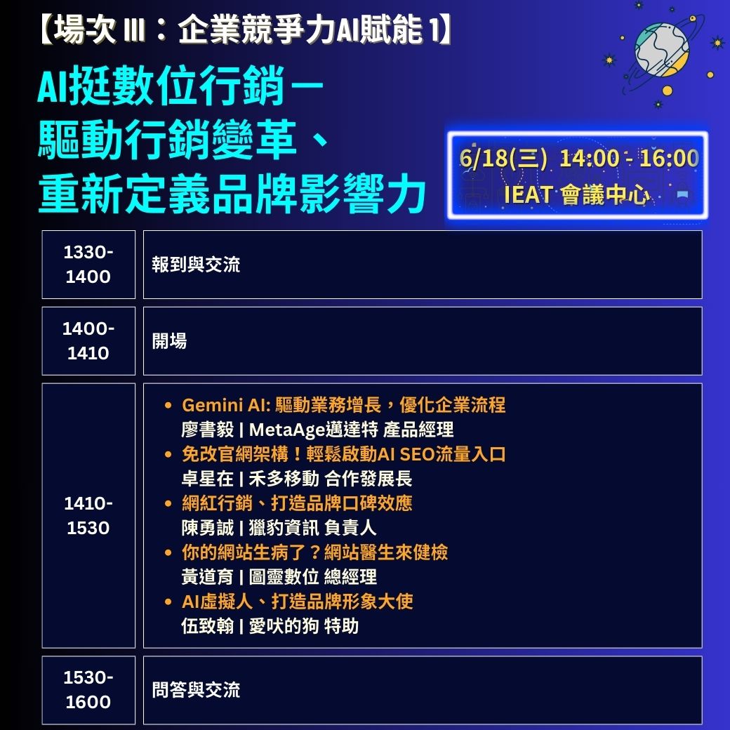 6/18【企業競爭力AI賦能 I】AI挺數位行銷-驅動行銷變革、重新定義品牌影響力